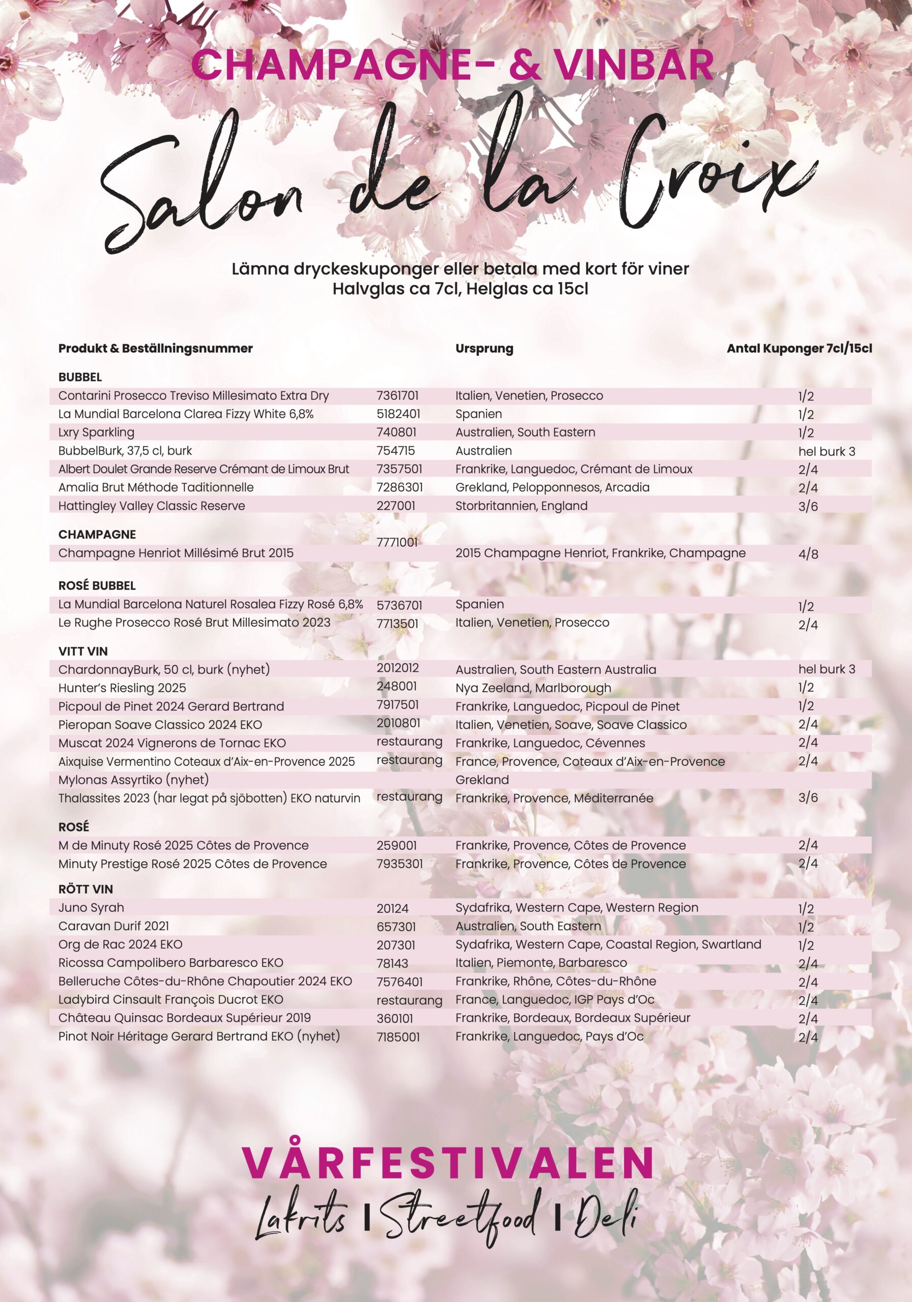 Ett dragplåster är vårt fina utbud av vin, bubbel och champagne. Kom och prova er fram till nya favoriter. Se nedan ett urval av allt som finns att smaka på: